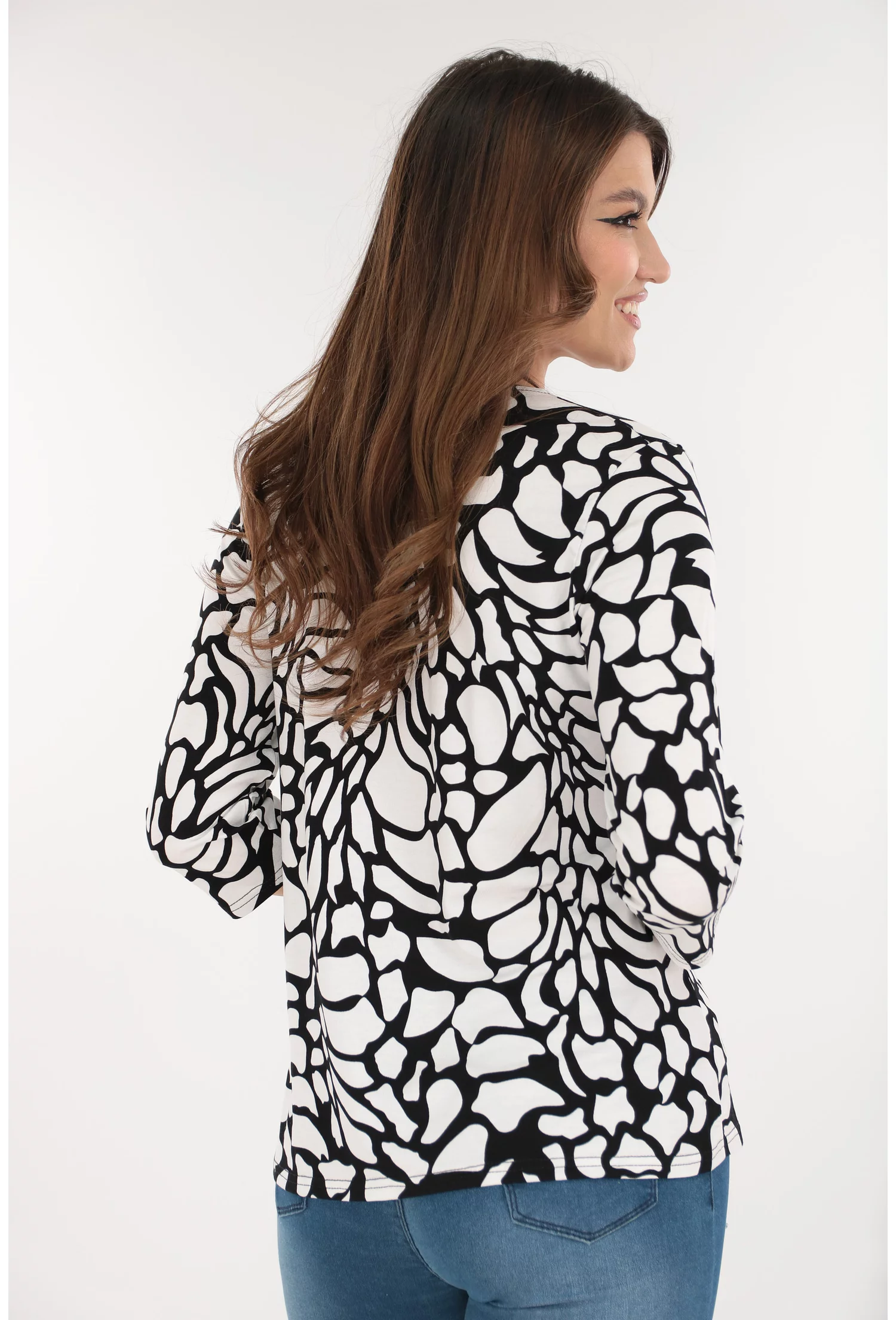 -Bluza alba din vascoza cu imprimeu abstract negru