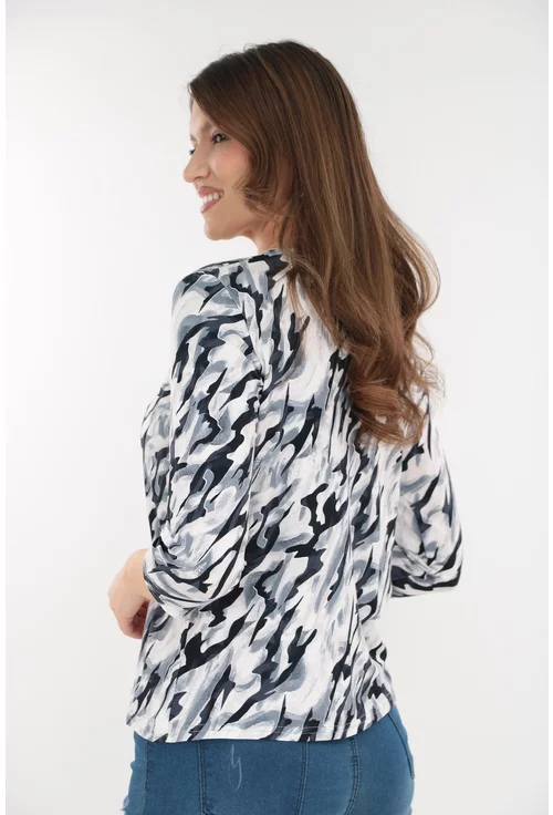 -Bluza din vascoza cu imprimeu abstract gri-negru