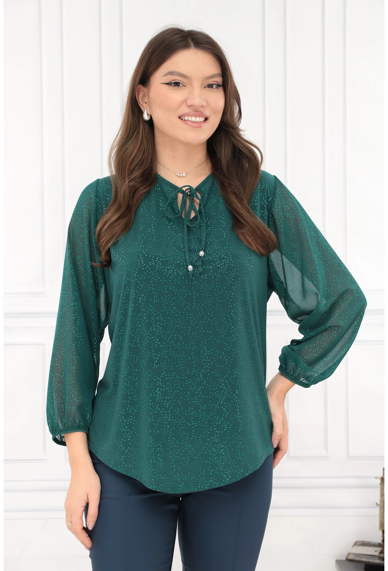 Bluza verde smarald cu glitter discret si fundita decorativa