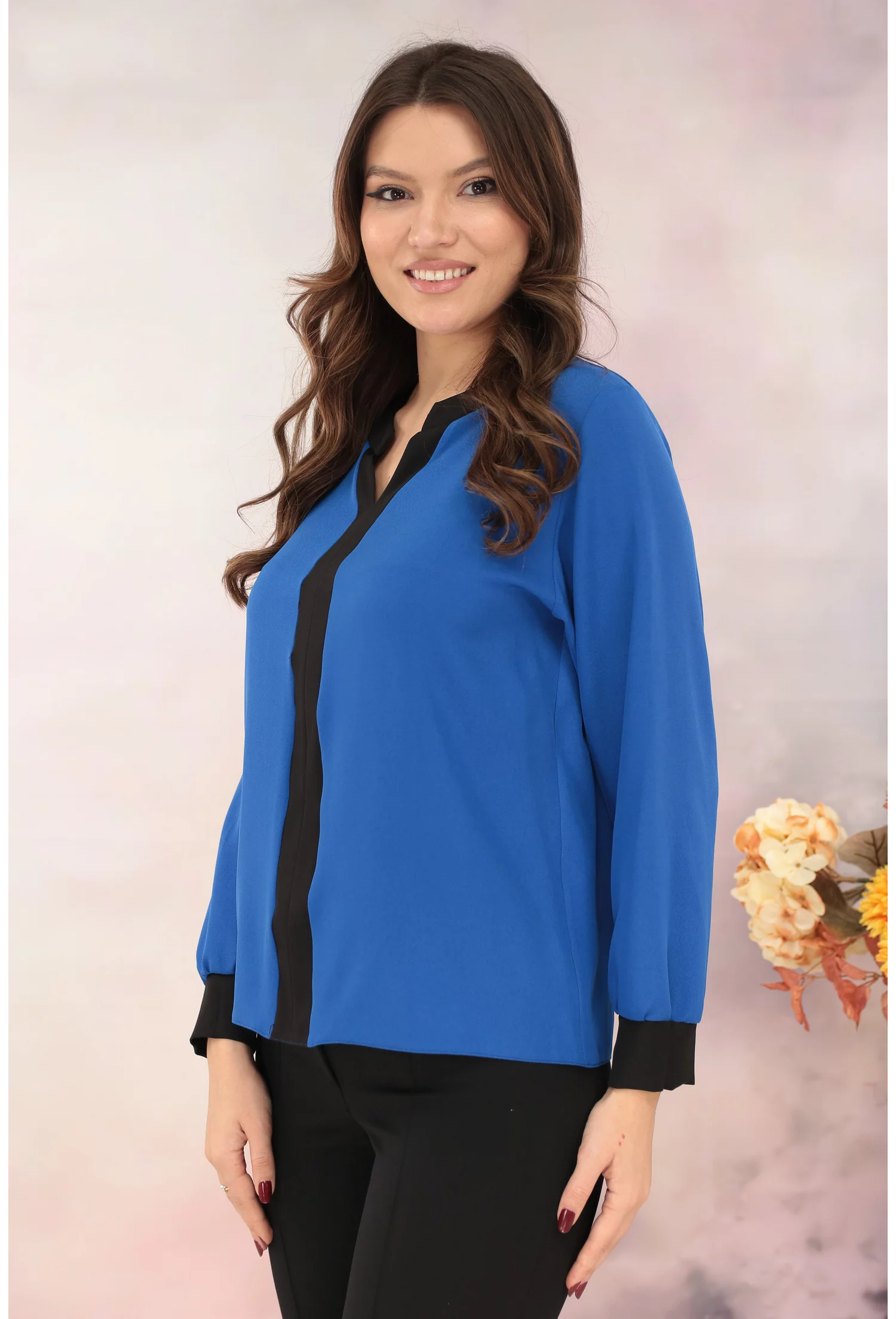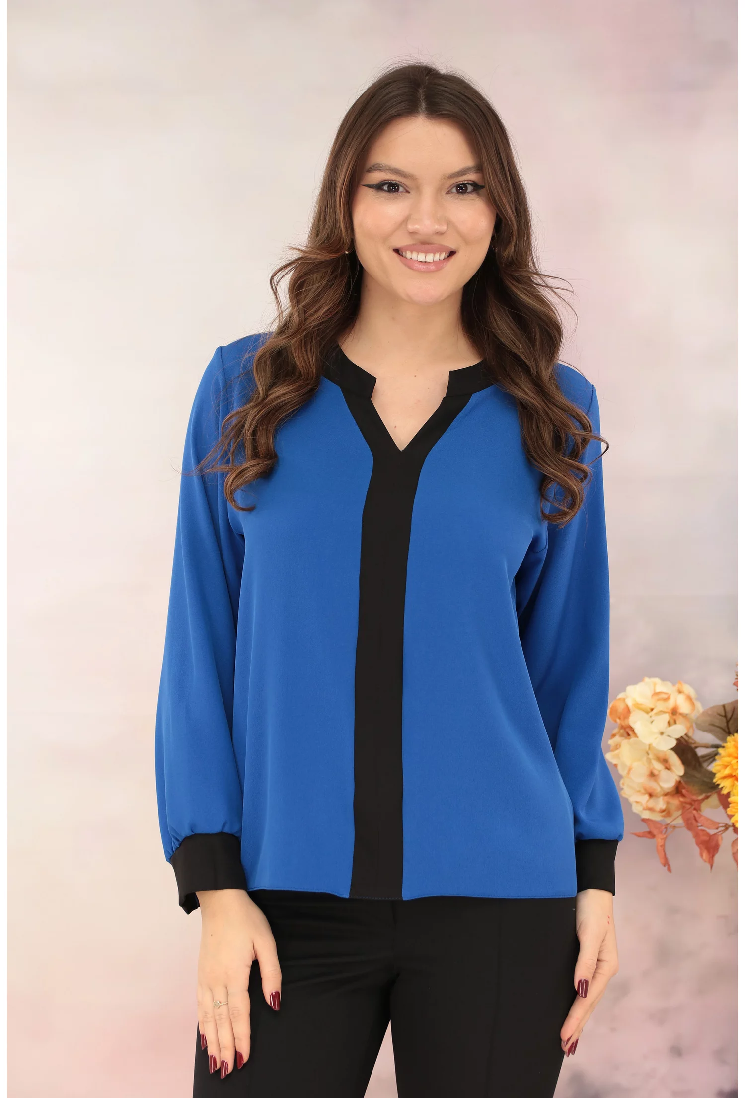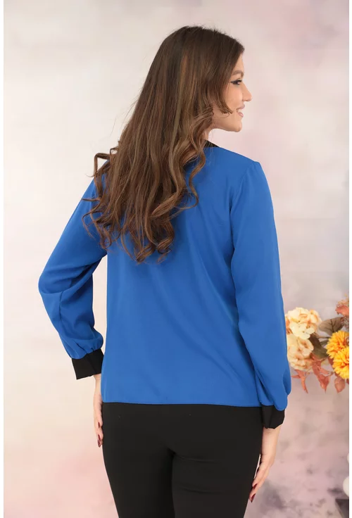 -Bluza albastra cu insertii negre la decolteu si mansete