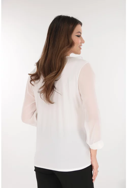 -Bluza eleganta alba cu volanase la decolteu