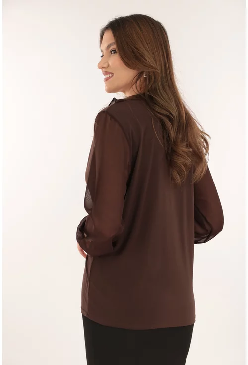 -Bluza eleganta maro cu volanase la decolteu