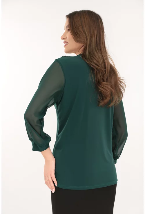 Bluza eleganta verde-smarald cu volanase la decolteu