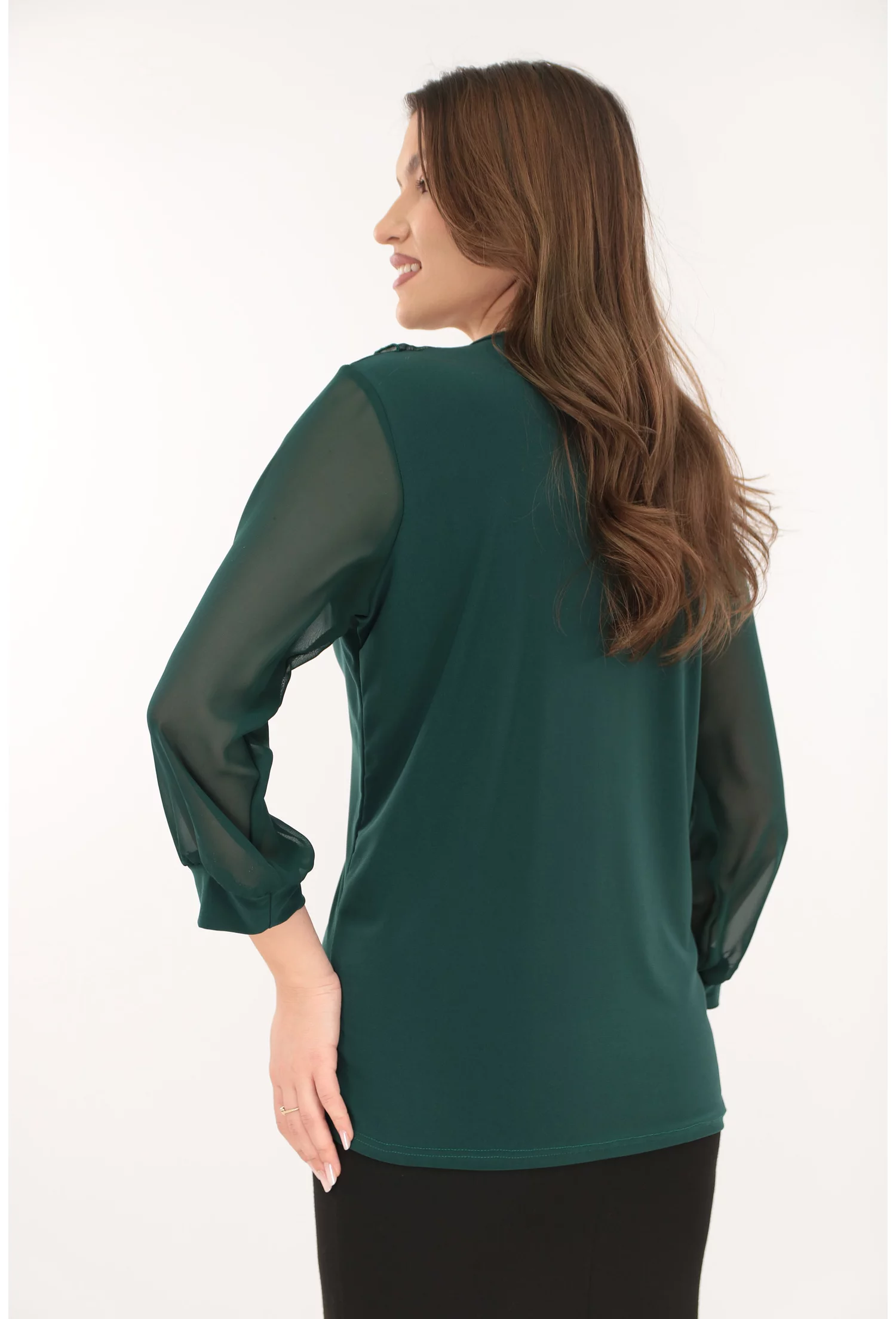 -Bluza eleganta verde-smarald cu volanase la decolteu