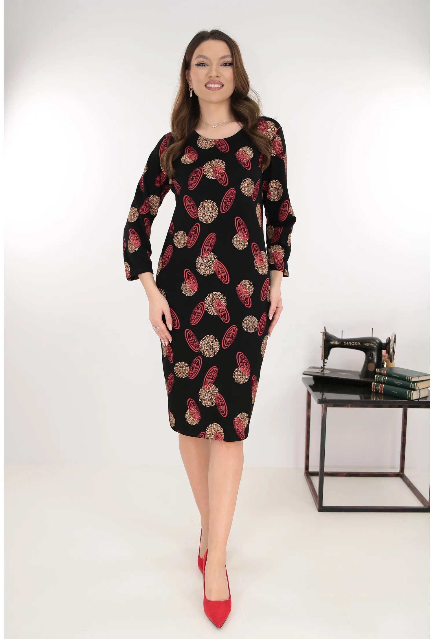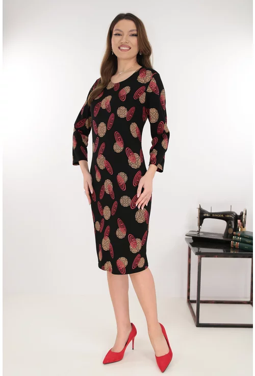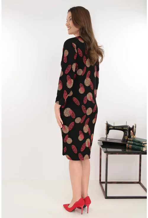 Rochie dreapta neagra cu imprimeu abstract caramiziu