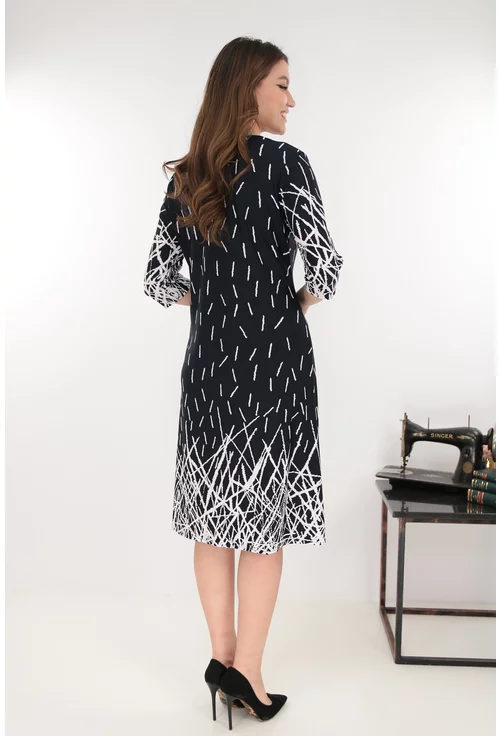 -Rochie evazata neagra cu imprimeu geometric in degrade