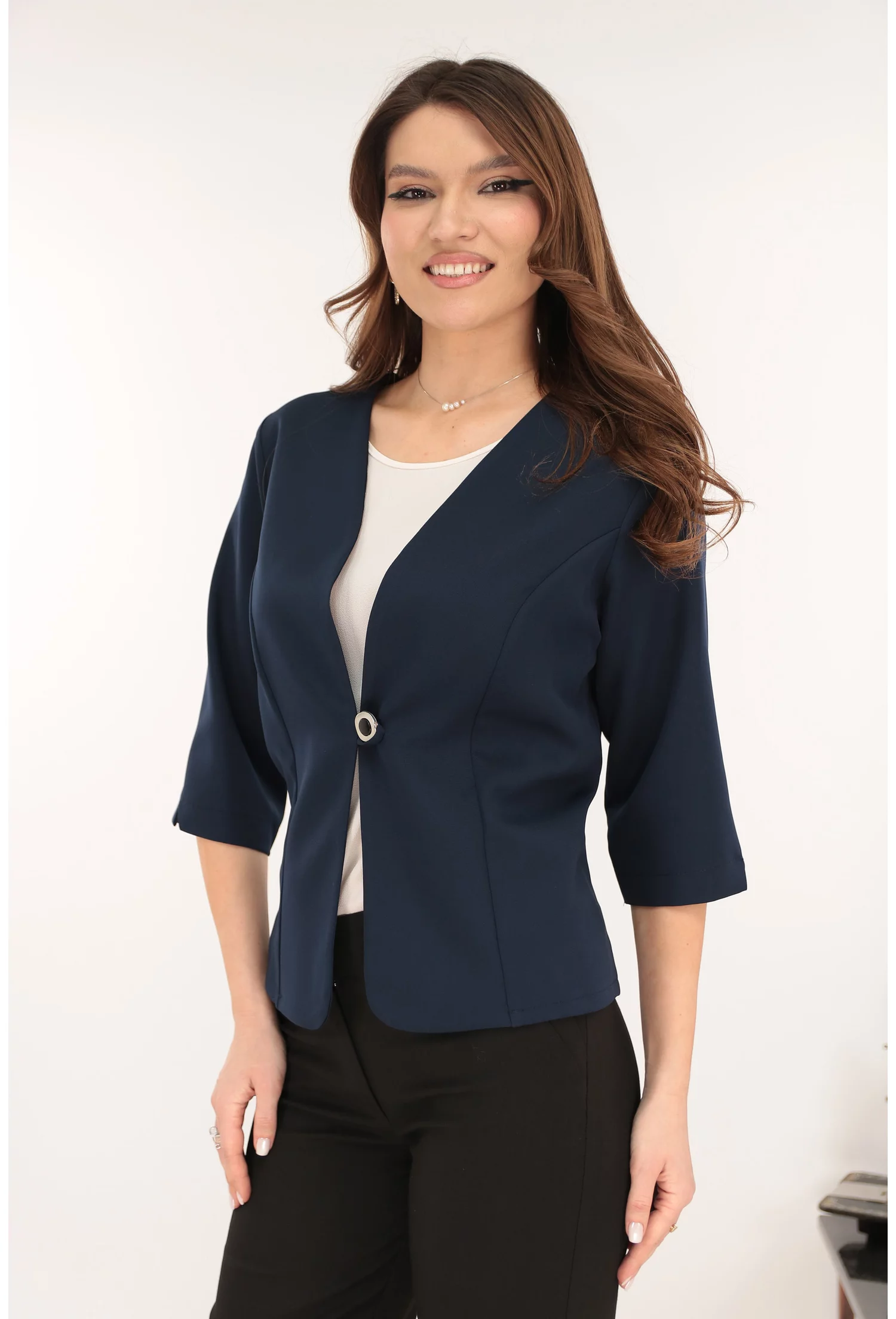 -Sacou bleumarin din stofa elastica